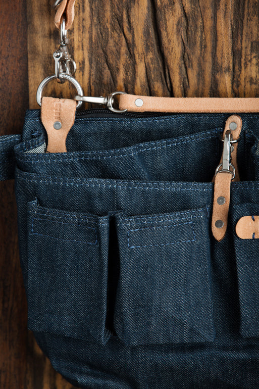 The inspiration for the HoldFast Lens Quiver is drawn from an Arrow Quiver. An arrow quiver is an open container for arrows designed to give an archer quick and unfettered access to his ammo. When working a wedding or sports event the photographer needs quick access to lenses and other gear without the distractions of flaps, zippers and bag covers. With this in mind we designed the perfect tool to hold needed accessories, without hinderance, in a way that everything stays put and in place. Crafted out of 18oz twill canvas with our leathers to match your MoneyMaker.