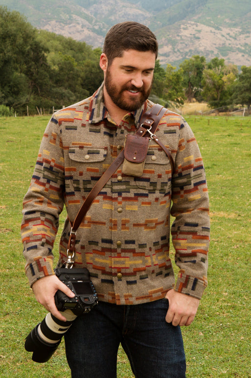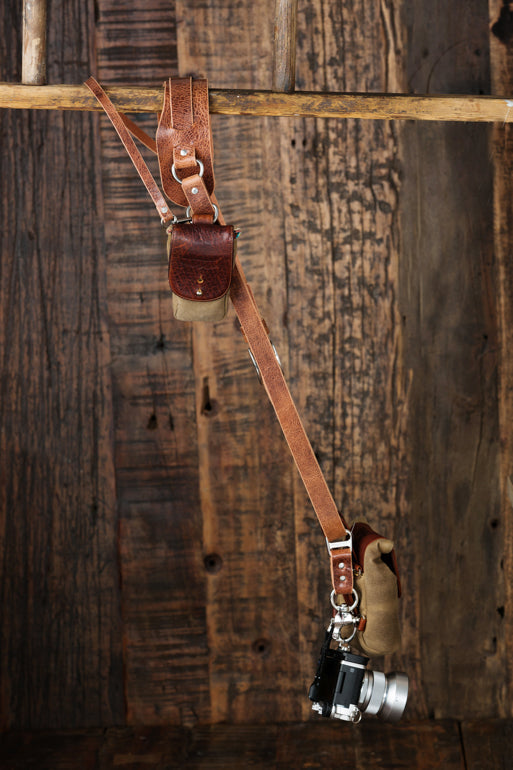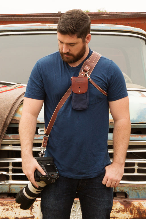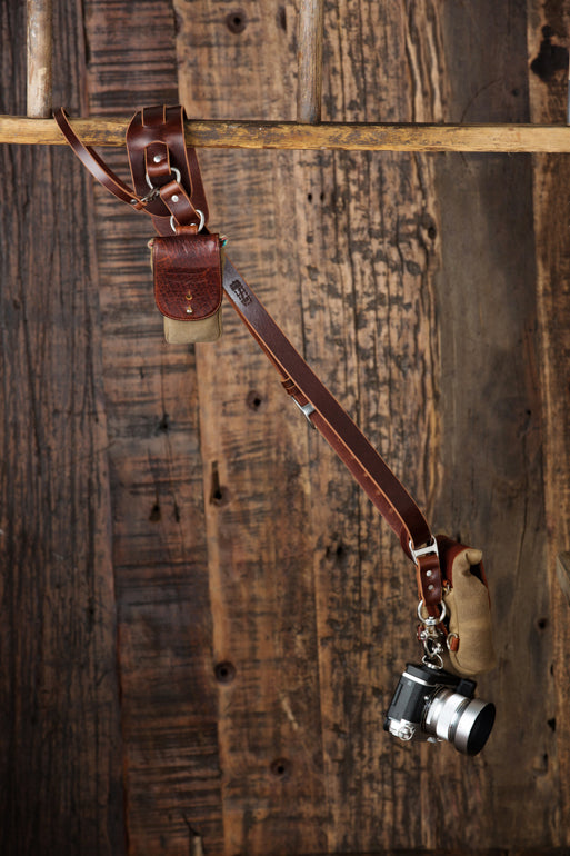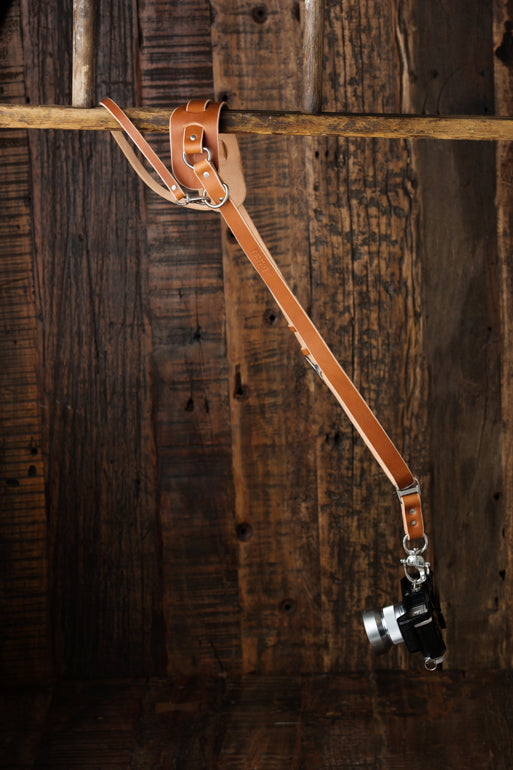 The MoneyMaker Solo sling strap is a single camera, cross body version of the legendary MoneyMaker. Same leathers and hardware, remixed into the perfect blend of high form and function for the single camera user.