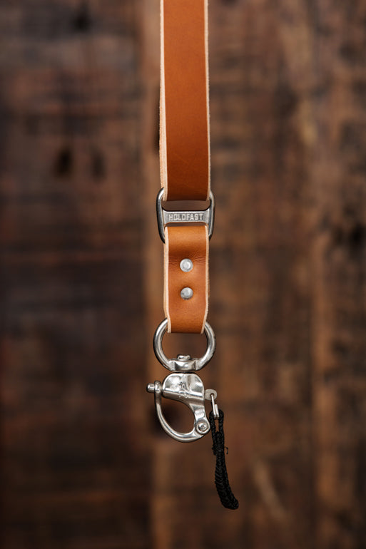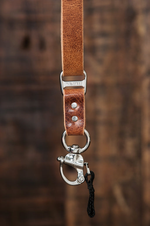 And here's what really sets this strap apart, the included Belt Anchor. Attach this little gem to any belt, or one of ours for a perfect match, and now your camera stays put where you want it (no swinging forward or flopping around) until you're ready to shoot. A quick tug will release the camera when you're ready to shoot, and when you're done, you can quickly and easily attach it back to the belt using only one hand.